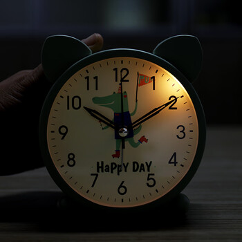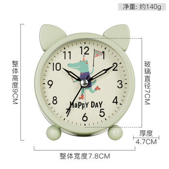 汉时(Hense)儿童小闹钟学生专用起床神器卡通桌面时钟懒人床头闹铃HA14绿3寸开学季