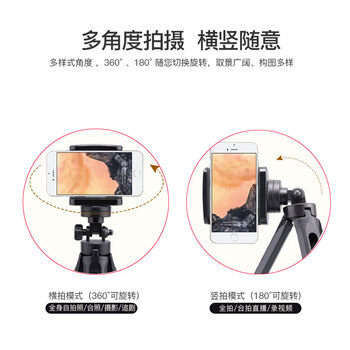 孜泰 手机支架桌面直播支架相机微单摄像机架落地三脚架自拍架【可伸缩一体便携360度旋转】黑色