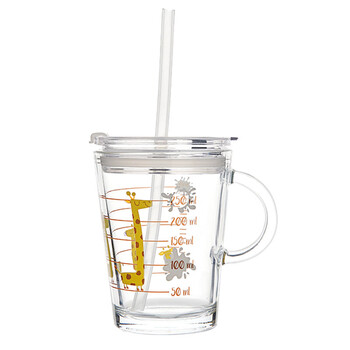 帕莎帕琦吸管杯进口钢化耐热玻璃带刻度宝宝牛奶杯儿童泡奶粉水杯子385ML