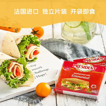 总统(President)法国进口埃曼塔芝士片(奶酪制品)200g 一包 面包 披萨 食材