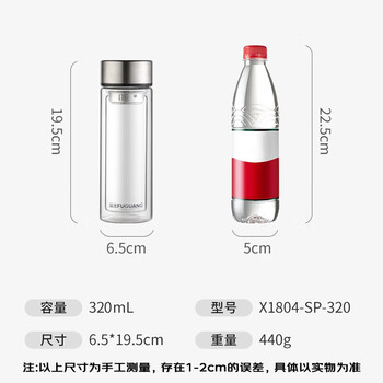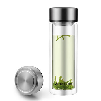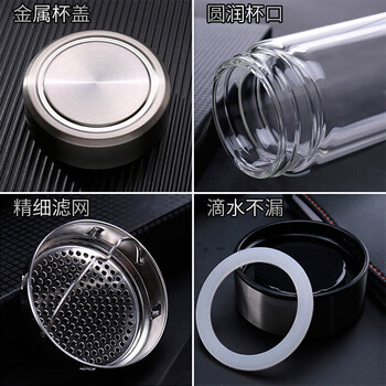 富光双层玻璃杯大容量带茶隔水杯高硼硅泡茶杯子商务男士办公杯320ml