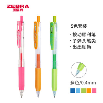 斑马牌(ZEBRA)JJS15中性笔 0.4mm按动签字笔 学生彩色手账笔重点标记笔 JJS15-5CA 5色套装