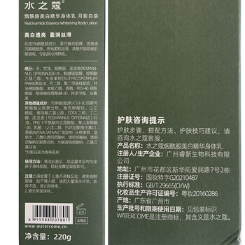 水之蔻 WATERCOME 烟酰胺美白精华身体乳220G月影白茶X1
