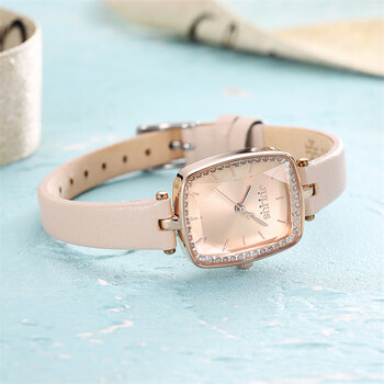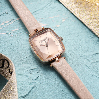 聚利时(Julius)手表女学生时尚简约长方形锆石石英防水女士手表浅咖色JA-1341B