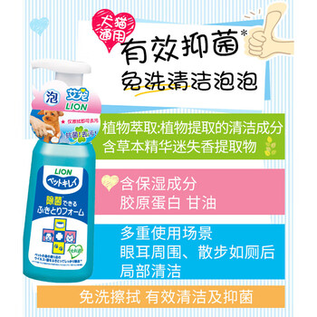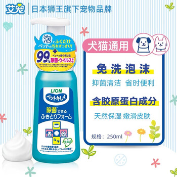 狮王艾宠宠物免洗泡沫沐浴露抑菌泡沫250ml猫咪狗狗通用沐浴露