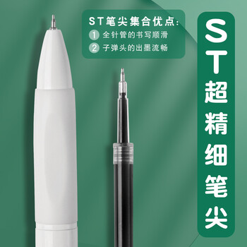 三年二班 10支装st笔尖按动子弹头中性笔笔芯0.5mm 签字笔替芯水笔芯