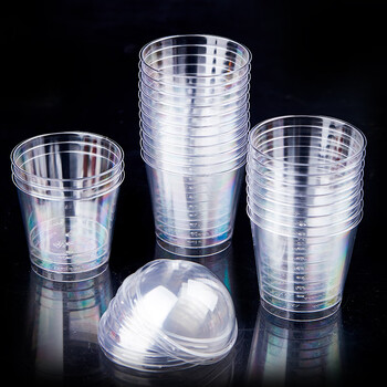 SHUANG YU布丁杯100只*200ml慕斯杯一次性塑料杯子带盖水果蛋糕酸奶杯随机