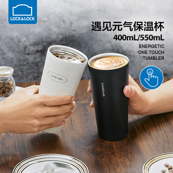 乐扣乐扣(LOCK&LOCK)遇见元气保温保冷咖啡杯弹跳盖男女颜值水杯400ML黑色LHC3271BLK