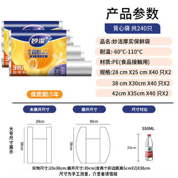 妙洁 手提背心式保鲜袋 2组共240只 每组中大特大号各40只