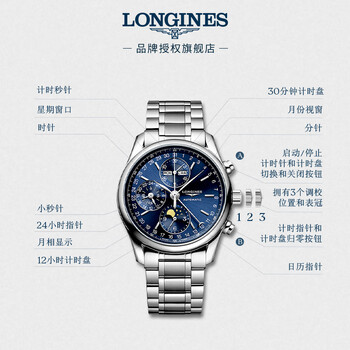 浪琴(LONGINES)瑞士手表 名匠系列计时码表 月相男士钢带机械表 L26734926