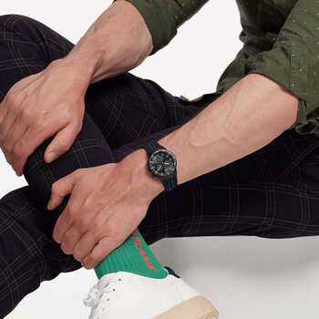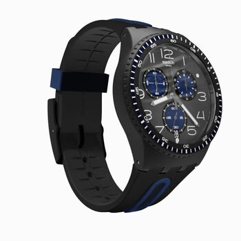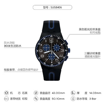 斯沃琪(Swatch)瑞士手表 黑蓝轻舟 三眼计时生日礼物考试石英潮流腕表 SUSB406