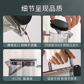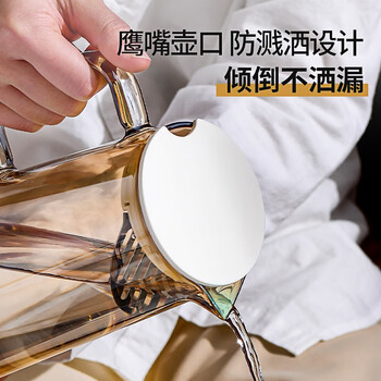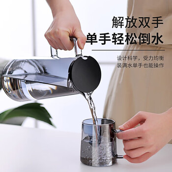 JEKO&JEKO凉水壶耐高温冷水壶玻璃杯家用晾水壶大容量花茶壶 1350mL烟灰色