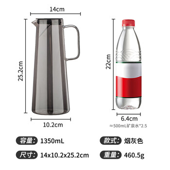 JEKO&JEKO 1350mL玻璃冷水壶 透明灰 1只