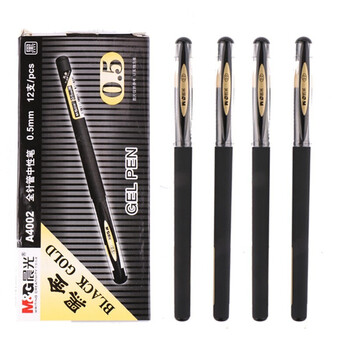 晨光(M&G)A4002黑金系列中性笔全针管碳素黑色磨砂杆考试水笔办公签字笔 0.5黑色12支装【ZY】