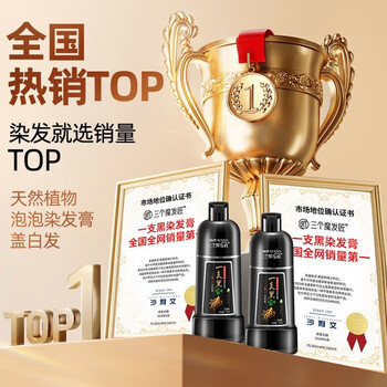 三个魔发匠一洗黑染发膏泡泡染天然无刺激一支黑草本染发剂盖白发自然黑