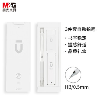 晨光(M&G)文具0.5mm自动铅笔套装 优品系列活动铅笔三件套(自动铅笔*1/HB铅芯*1/少屑橡皮*1) 礼盒装HAMP1614