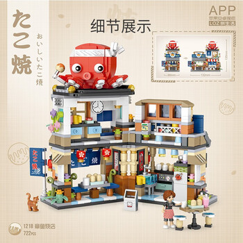 俐智(Loz)积木儿童玩具街景拼装模型情人节礼物男女友生日礼物1218章鱼烧店