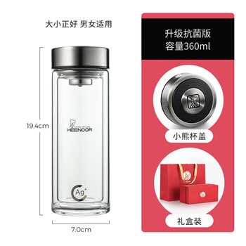 希诺抗菌玻璃杯双层防烫办公车载水杯男高档泡茶杯子XN-9303 360mL
