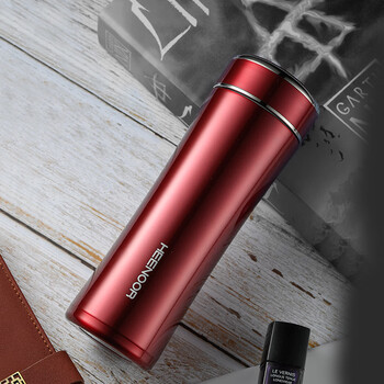 希诺保温杯女士高颜值不锈钢水杯家用便携泡茶杯子XN-3029红色 395mL