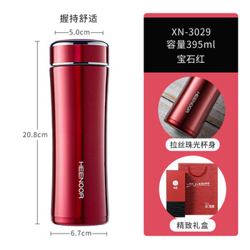 型号:XN-3029保温杯 材质(杯体、盖子、密封圈、杯口环、茶网):304不锈钢+珠光漆+PP 尺寸(长宽高、杯底直径、杯口直径):高208mm,杯底直径67mm,杯口直径50mm 容量:395ml 净重量(kg):0.32 颜色:红色 保温时间:6~12小时 是否有茶格:否