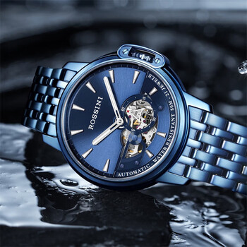 罗西尼(ROSSINI)手表男机械表勋章蓝盘钢带生日礼物送男友国表镂空商务蓝 6793