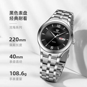 天王(TIAN WANG)手表男士 生日礼物钢带石英男表黑色GS3626S.DD.S.B