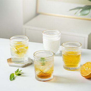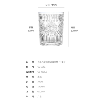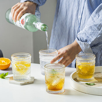 CLITON玻璃杯复古金边ins风玻璃水杯茶杯牛奶果汁饮料杯烈酒杯套装4只