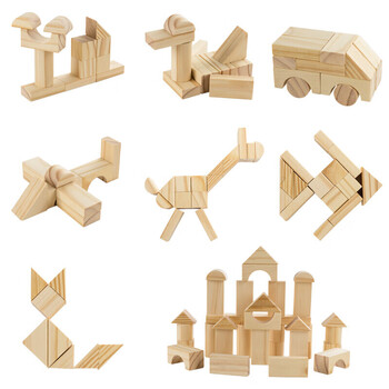 福孩儿实木108粒原木质无漆积木婴儿童玩具男孩女孩幼儿园宝宝生日礼物