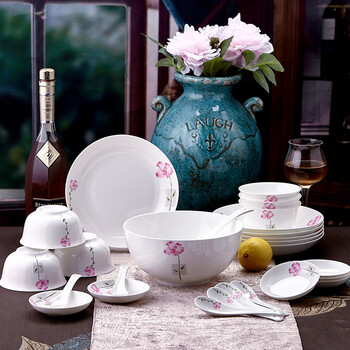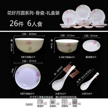 Remec骨瓷花好月圆26头餐具套装 碗盘碟 陶瓷餐具 礼盒餐具