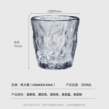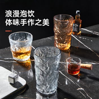 炊大皇冰川纹玻璃杯时尚潮流ins风果汁杯酒杯水杯300ML两只装【透明色】