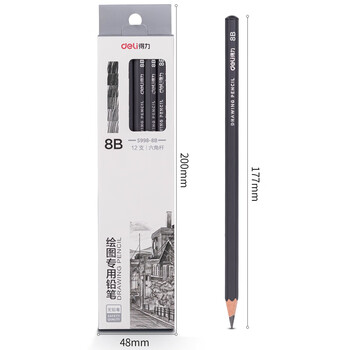 得力(deli)绘图铅笔12支8B素描铅笔学生六角杆书写黑铅美术写生工程制图笔初学者专用学生开学文具