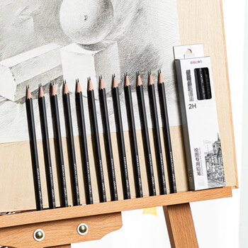 得力(deli)绘图铅笔12支2H素描铅笔学生六角杆书写黑铅美术写生工程制图笔初学者专用学生开学文具