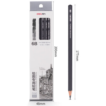 得力(deli)绘图铅笔12支6B素描铅笔学生六角杆书写黑铅美术写生工程制图笔初学者专用学生开学文具