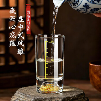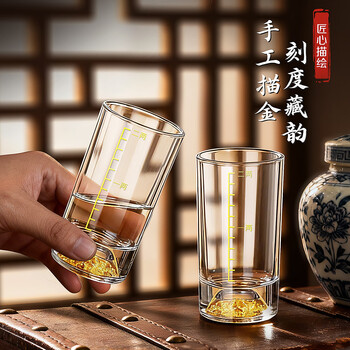 青苹果手握金山金箔二两白酒杯6只装 水晶玻璃烈酒杯黄酒杯乔迁生日礼物