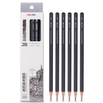 得力(deli)绘图铅笔12支2B素描铅笔学生六角杆书写黑铅美术写生工程制图笔初学者专用学生开学文具