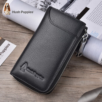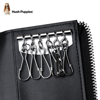 暇步士(Hush Puppies)钥匙包男士外置卡位便携钥匙扣多功能收纳包礼盒装生日礼物