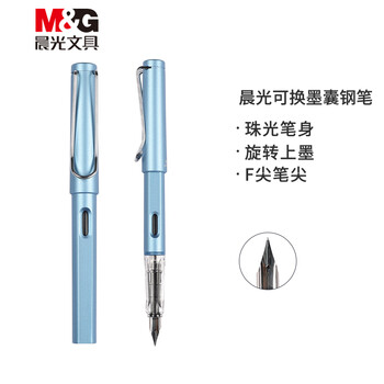 晨光(M&G)文具珠光蓝F尖可换墨囊钢笔 学生正姿练字笔 办公签字笔墨水笔 单支装AFPY522525