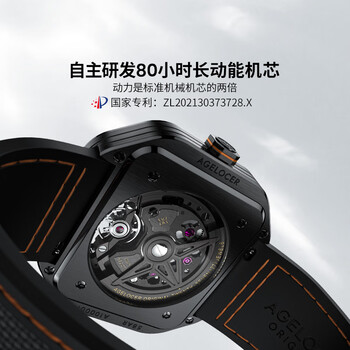 爱勒 AGELOCER原创火山表男士方形镂空机械手表时尚大表盘送男友生日礼物礼盒装