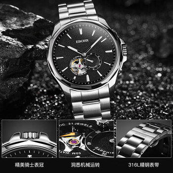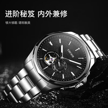 依波(EBOHR)手表男 探索者节日礼物系列钨钢圈镂空钢带男士机械腕表51460138