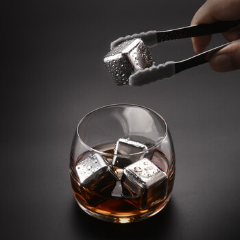 CLITON速冻304不锈钢冰块威士忌洋酒啤酒饮料冰酒石冰粒子方形4颗送夹子