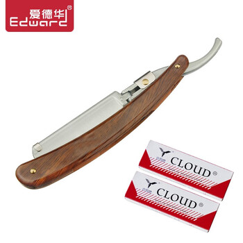 爱德华(EDWARD) 理发专业刮刀老式手动剃须刀刮胡刀木纹手柄刮刀A77配两盒刀片