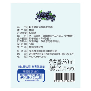 好天好饮(GOODDAY)韩国烧酒原瓶进口 蓝莓味配制酒13.5度360ml单瓶装*1瓶