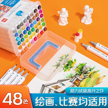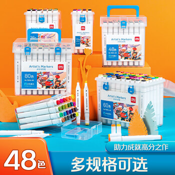 得力(deli)水性马克笔48色双头方杆大容量速干学生元旦树常用款水彩笔勾线笔绘画荧光笔水彩笔礼物美育HM362