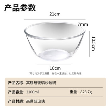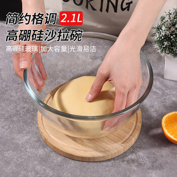 拜杰玻璃碗水果沙拉碗玻璃盆和面盆透明碗打蛋盆蛋糕烘焙碗2100ML