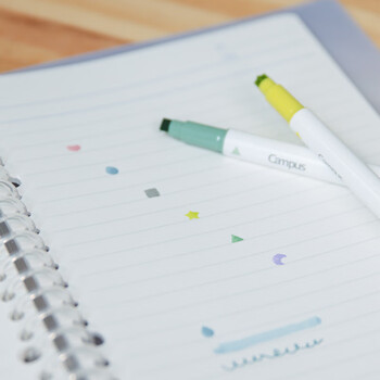 国誉(KOKUYO)Campus印章双头荧光笔 学生用划重点标记记号笔手帐印章DIY笔 方形/浅灰 1支装WSG-PMW301M