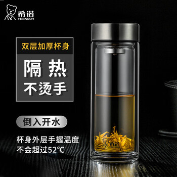 希诺双层玻璃杯男家用商务办公泡茶杯子车载过滤水杯XN-6595 360mL