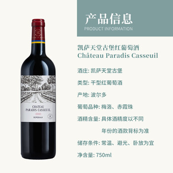拉菲凯萨天堂古堡红葡萄酒750ml*6、定制木箱*1、开瓶器*1