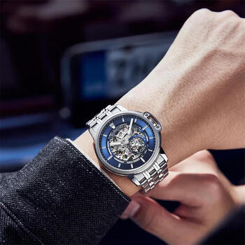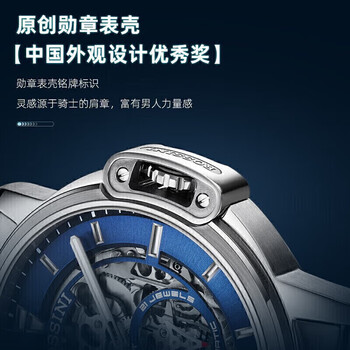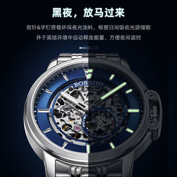 罗西尼(ROSSINI)手表男机械表勋章蓝盘钢带生日礼物送男友国表蓝色镂空 921793