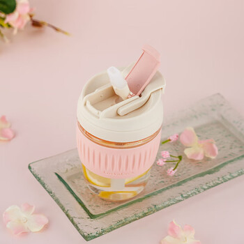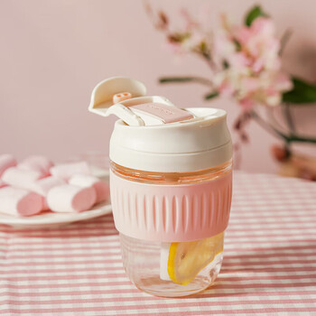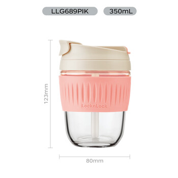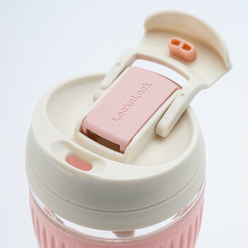 乐扣乐扣(LOCK&LOCK)咖啡杯耐热玻璃水杯子男女学生便携式双饮吸管杯随手杯350ML粉色