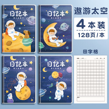 金值 4本田字格日记本/遨游太空 小学生胶套儿童笔记本作文本 一年级二年级三年级写周记本子小学语文本